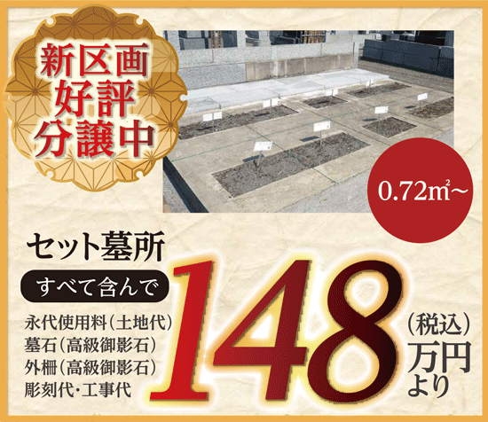 | 区画 | 0.72㎡ 永代使用料 50万~ 0.81㎡ 永代使用料 55万~ 墓地区画空きあり 随時、受付しております。 |